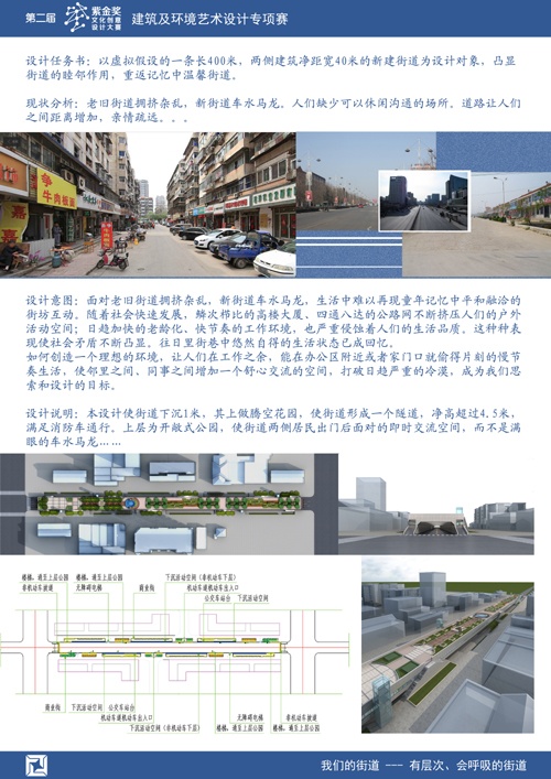 設計任務書:以虛擬假設的一條長400米,兩側建筑凈距寬40米的新建街道為設計對象,凸顯街道的睦鄰作用,重返記憶中溫馨街道。