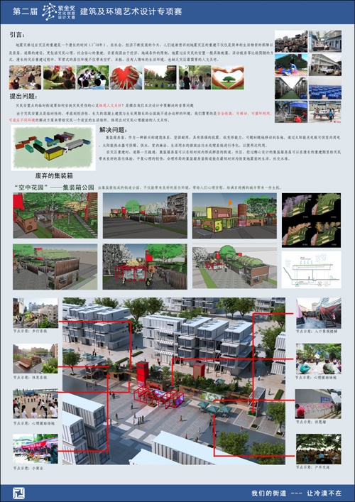 災民安置點的臨時街道要如何安撫災民受傷的心靈體現人文關懷?是擺在我們本次設計中要解決的首要問題 由于災民安置點是臨時性的,我們需要的是安全性高,可移動,可循環利用,可適應不同環境的解決方案來帶給災民一個適宜的生活場所。體現出對災民心理援助的人文關懷。