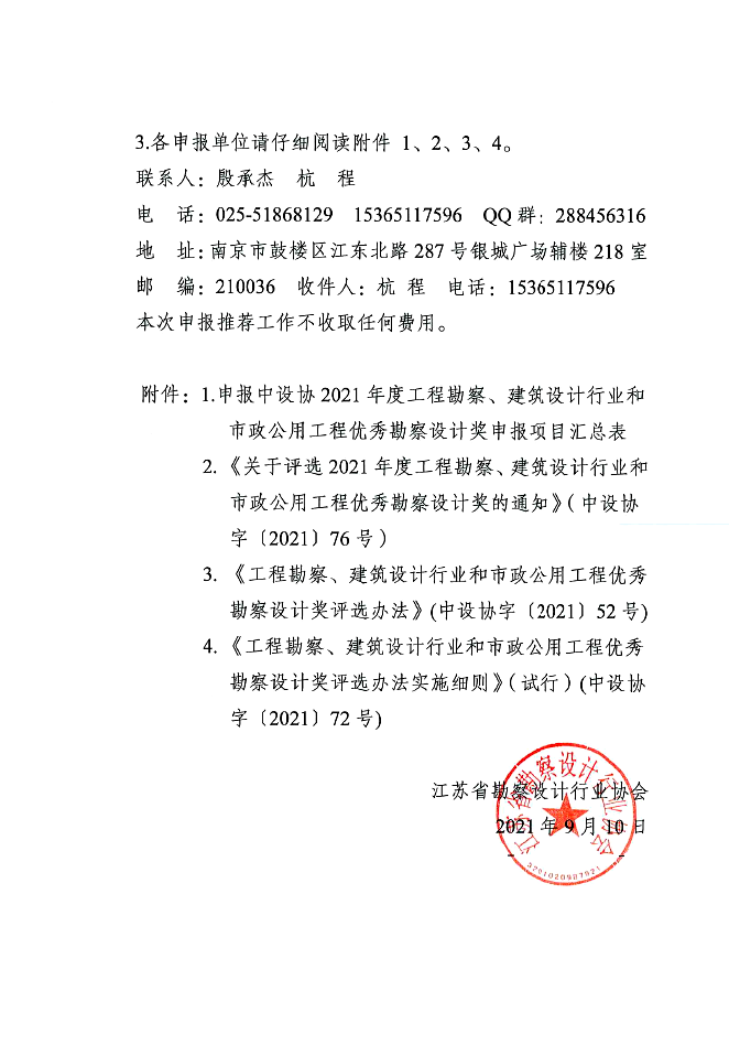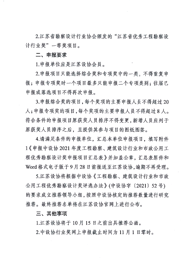 4.《工程勘察、建筑設(shè)計(jì)行業(yè)和市政公用工程優(yōu)秀勘察設(shè)計(jì)獎(jiǎng)評(píng)選辦法實(shí)施細(xì)則》(試行)(中設(shè)協(xié)字〔2021〕72號(hào))(點(diǎn)擊下載)